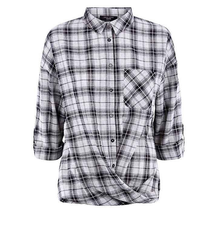 Petite Schwarz Weiss Kariertes Hemd Mit Gedrehtem Saum New Look