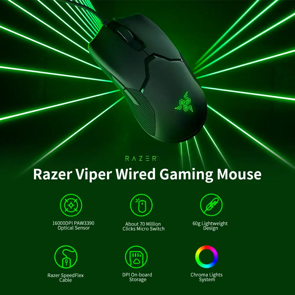 Razer Viper Wired Gaming Maus dpi Rgb Computer Mause Paw3390 Optische Sensor 60g Leichte Speedflex Kabel Dpi Fur Pc Mause Aliexpress
