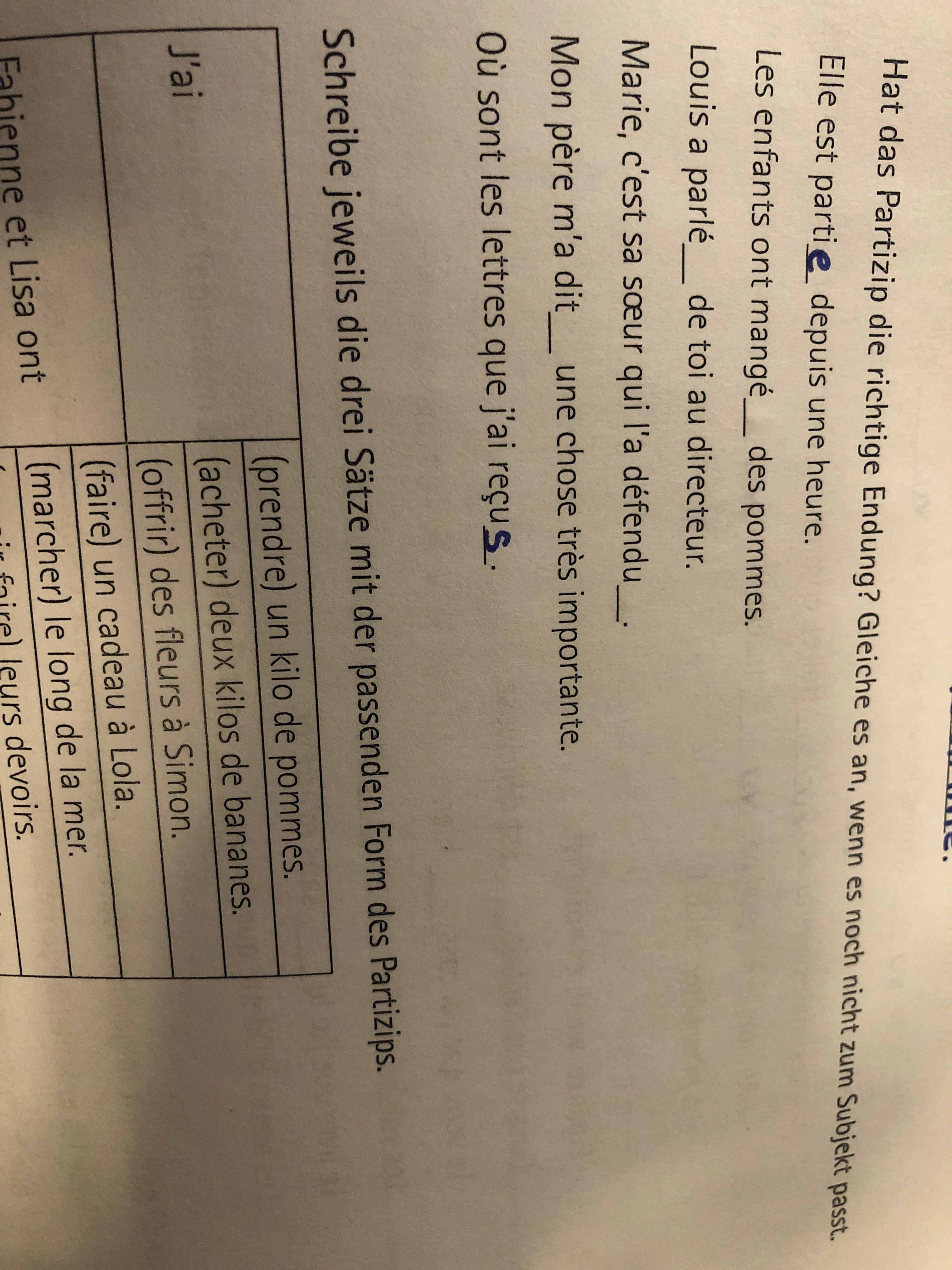 Franzosische Partizipien Le Participe Passe