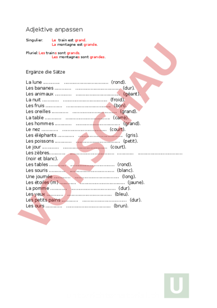 Adjectifs Adjektive Grammatik Gratis Franzosisch Arbeitsblatt 8500 Kostenlose Lernhilfen Allgemeinbildung Ch