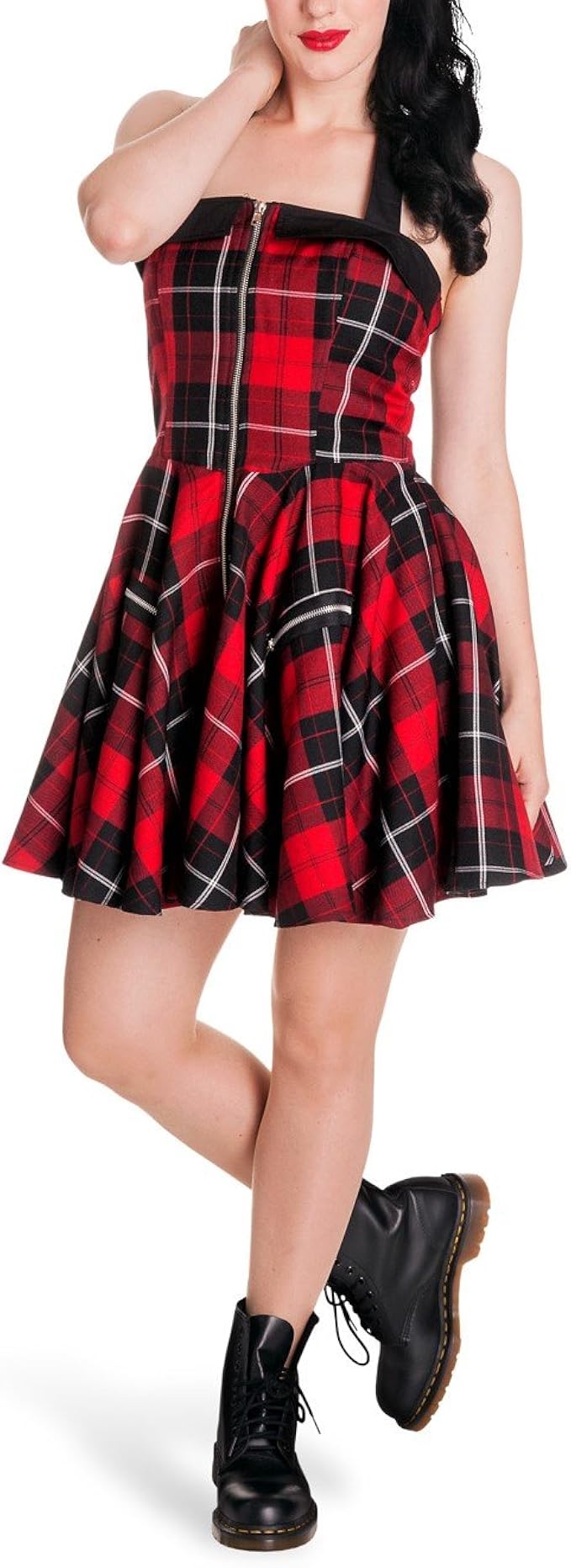 Hell Bunny Mini Kleid Rockabilly Schotten Design Neckholder Schwingender Rock Tartan Muster Reissverschluss Vorn Xl Amazon De Bekleidung
