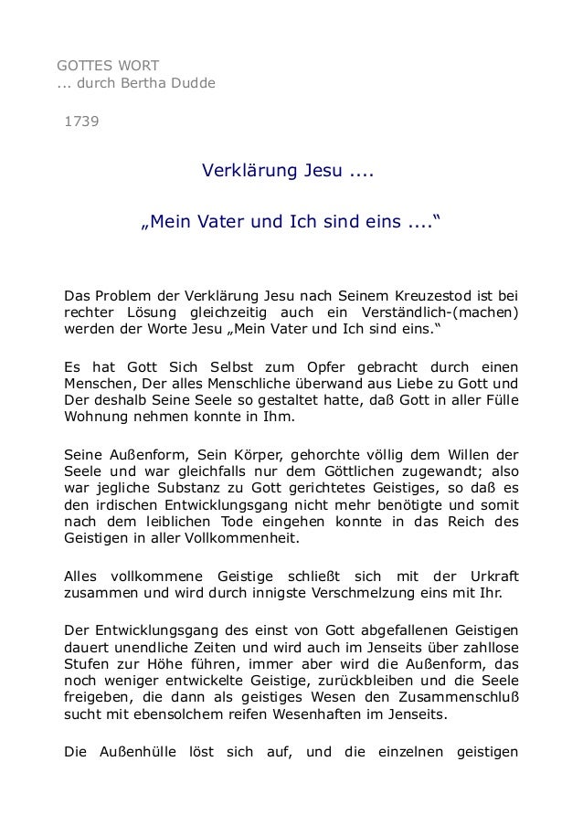 Aus Liebe zu Gott Offenbarung vom 14 1 18 * * * Weitere Informationen unter wwwausliebezugottde Die Ansprache Gottes an den Menschen bzw durch den Menschen vollzieht sich, wie alles in der Schöpfung, nach unumstößlichen, geistigen Gesetzmäßigkeiten. 1 Aus Liebe zu Gott Offenbarung vom 14 6 * * * Weitere Informationen unter wwwausliebezugottde Die Ansprache Gottes an den Menschen bzw durch den Menschen vollzieht sich, wie alles in. Aber wichtig wäre, die Dinge aus Liebe zu tun Die Gerechtigkeit aber und die Liebe zu Gott vergesst ihr Um Dinge aus Liebe zu tun, hilft es mir, vor jeder Tätigkeit mit einem freien Gebet zu beginnen Ich rufe immer wieder Jesus an, oder den Heiligen Geist oder Gott, dass er mir hilft, das, was ich tun will, mit Liebe zu tun Gebet Jesus.